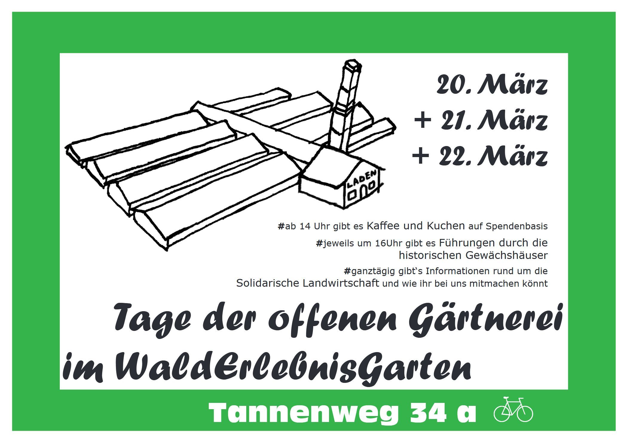 Wir informieren dich im März und April jeden Sonnabend um 14 Uhr. Für alle Interessierten zeigen wir unsere Gärtnerei, erklären unsere Wirtschaftsweise und beantworten Fragen zur solidarischen Landwirtschaft.