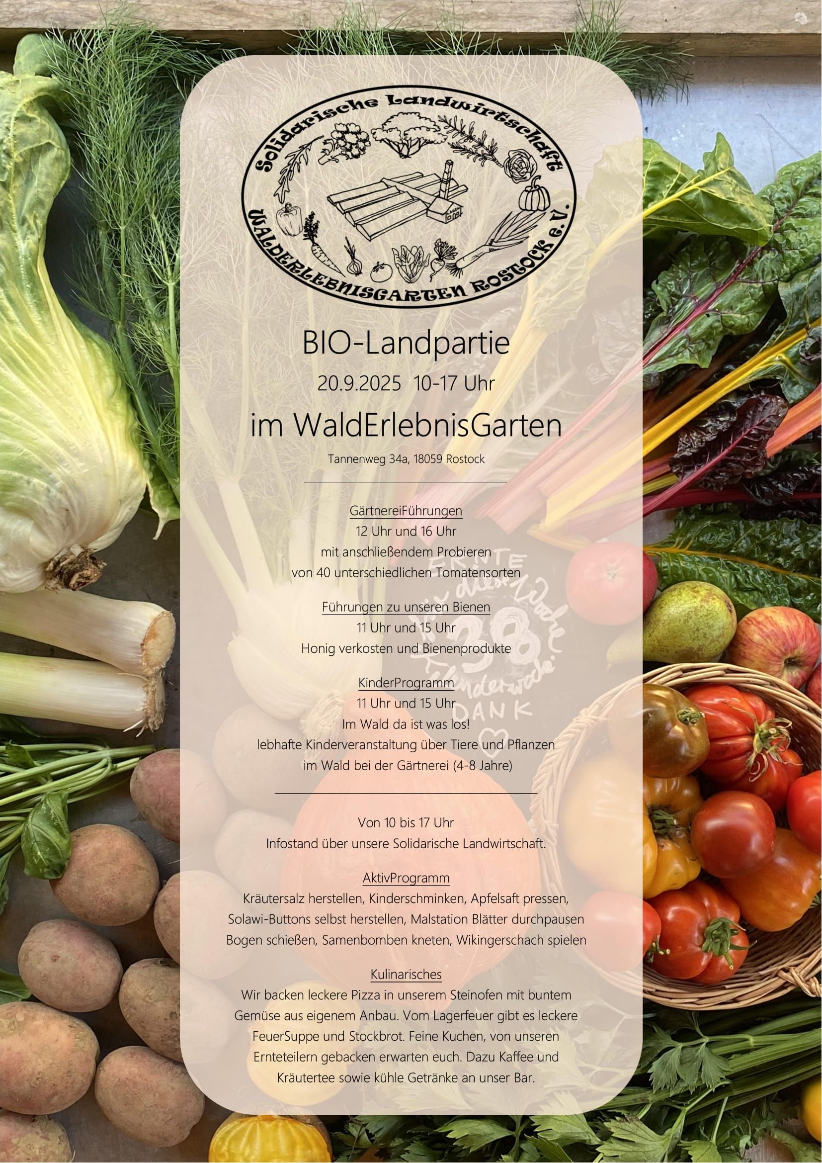wie in den vergangen Jahren bieten wir viel Interessantes zu unserem Projekt. Es wird Hofführungen, Tomatenverkostung, Bienenführung, Kinderschminken, Bastelstraße und und und geben. Für das leibliche Wohl ist wie immer gesorgt, lasst euch überraschen.